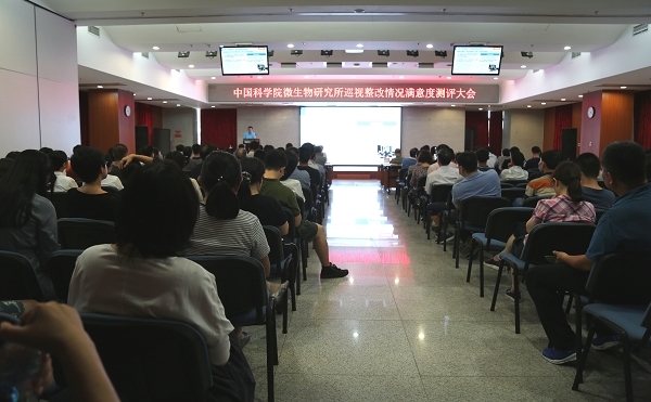 9月9日,微生物所召开巡视整改工作满意度测评会。北京分院监督审计处处长周亚东、业务主管王娟出席会议。微生物所领导班子成员,党委委员,纪委委员,管理支撑部门负责人,研究室(中心)正副主任,党支部书记、副书记,团委书记,工会主席、副主席,学生会主席,全体研究员、副研究员共100余人参加会议。会议由微生物所党委书记、副所长李俊雄主持。