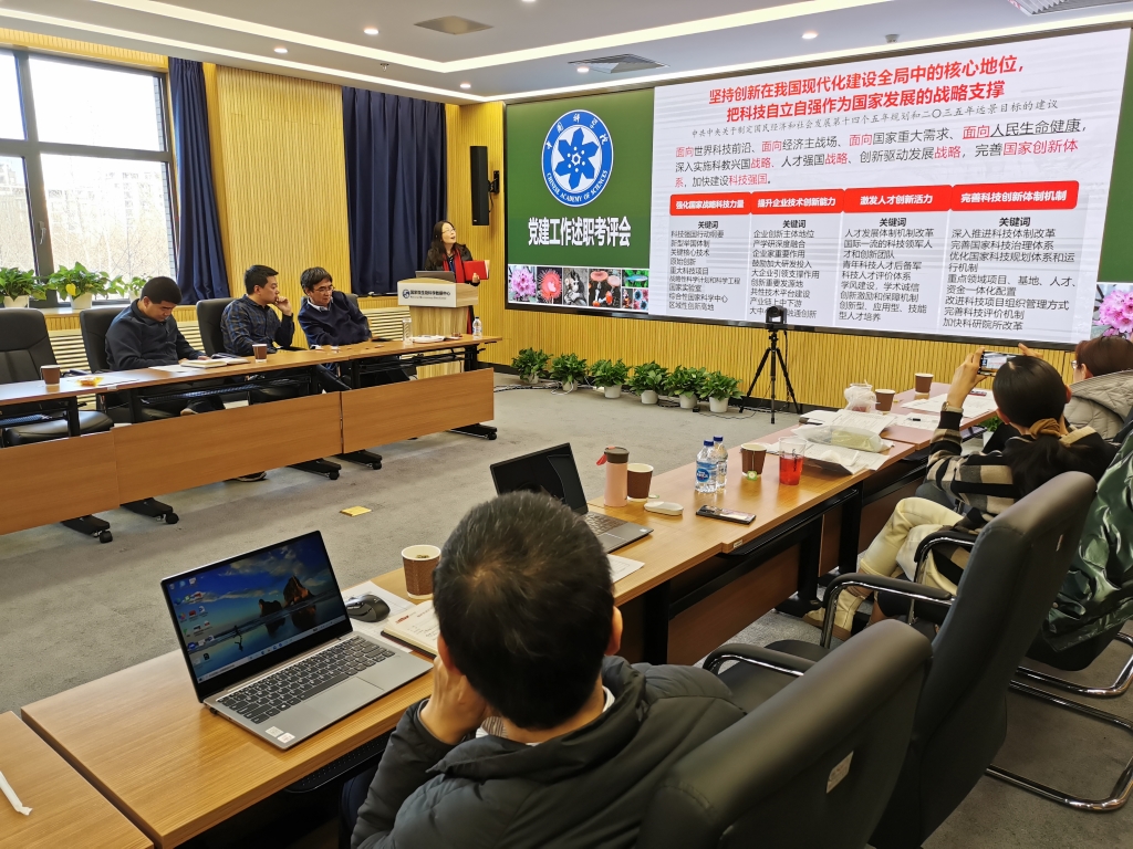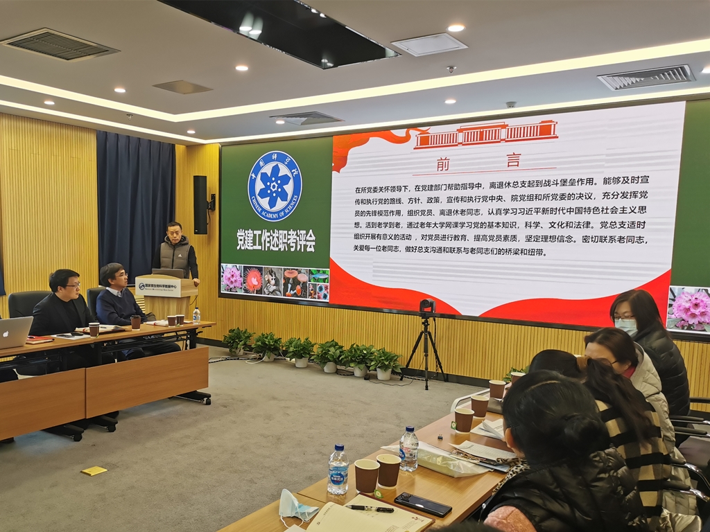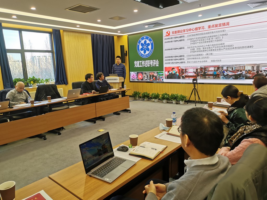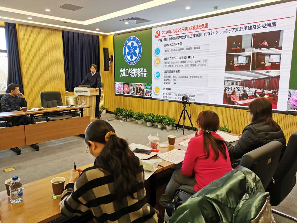李俊雄首先介绍了2020年度党建考评工作和“基层组织建设年”活动达标评估的相关要求。随后,各位党委委员分别围绕2020年政治建设、思想建设、组织建设、作风建设、创新性工作开展、投入党建工作的时间和精力以及存在问题和思考进行了述职汇报。党支部书记们也分别就政治功能发挥、支部班子建设、党员队伍建设、作用发挥情况以及党建与科研融合发展等5个方面取得的成效、存在的问题和下一步工作思路进行了报告。由党委书记、副书记、党建工作处负责人以及各科研支撑单元党员群众代表组成的评审小组现场对述职情况进行了打分。