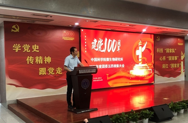 为表彰2020年度工作突出、表现优秀的团干部和团员,落实2021年度团组织学习计划,2021年5月26日,中国科学院微生物研究所团委在所E301会议室组织召开党史主题团课暨2020年度共青团工作表彰大会。所领导,各处室党支、团支部书记,团员和学生代表参加了本次会议。所团委书记王军主持会议。