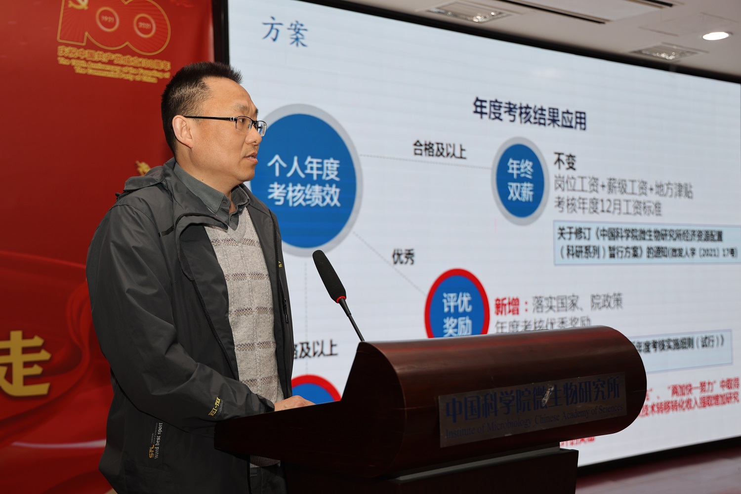周畅做《中国科学院微生物研究所岗位绩效工资管理办法》修订情况汇报
