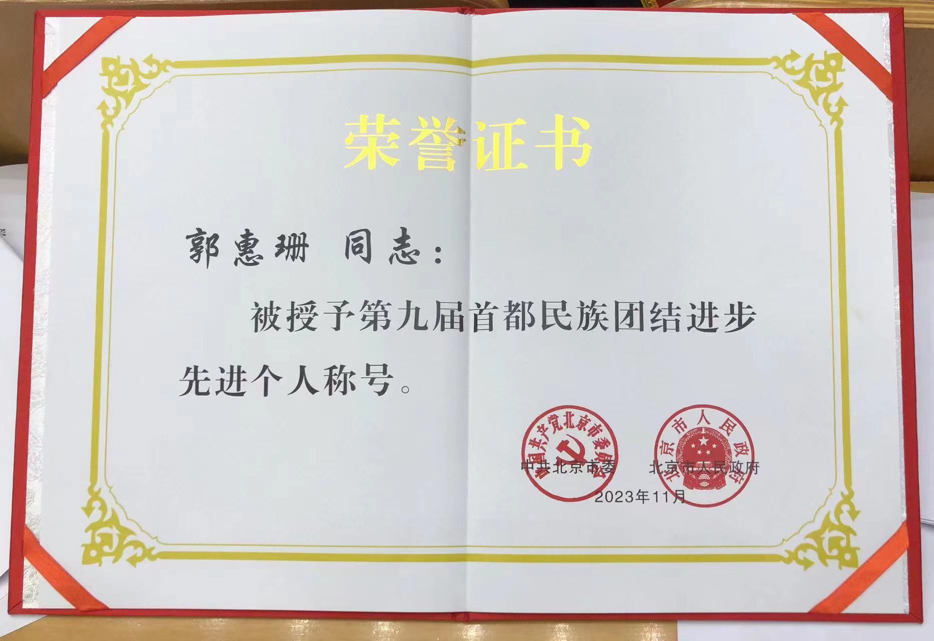 中国科学院微生物研究所郭惠珊研究员荣获“首都民族团结进步先进个人”称号