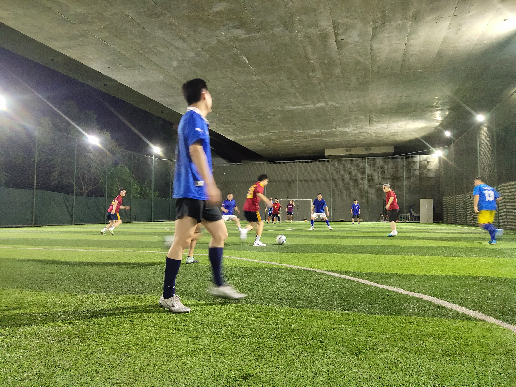 7月31日晚8点,比赛进入最后一轮。学生队在本轮比赛表现出快速磨合与成长的能力,每位队员在自己的位置上恪尽职守,奋力拼搏,面对强大的对手愈战愈勇,最终以4-4的比分踢平职工队,2-3惜败元老队。