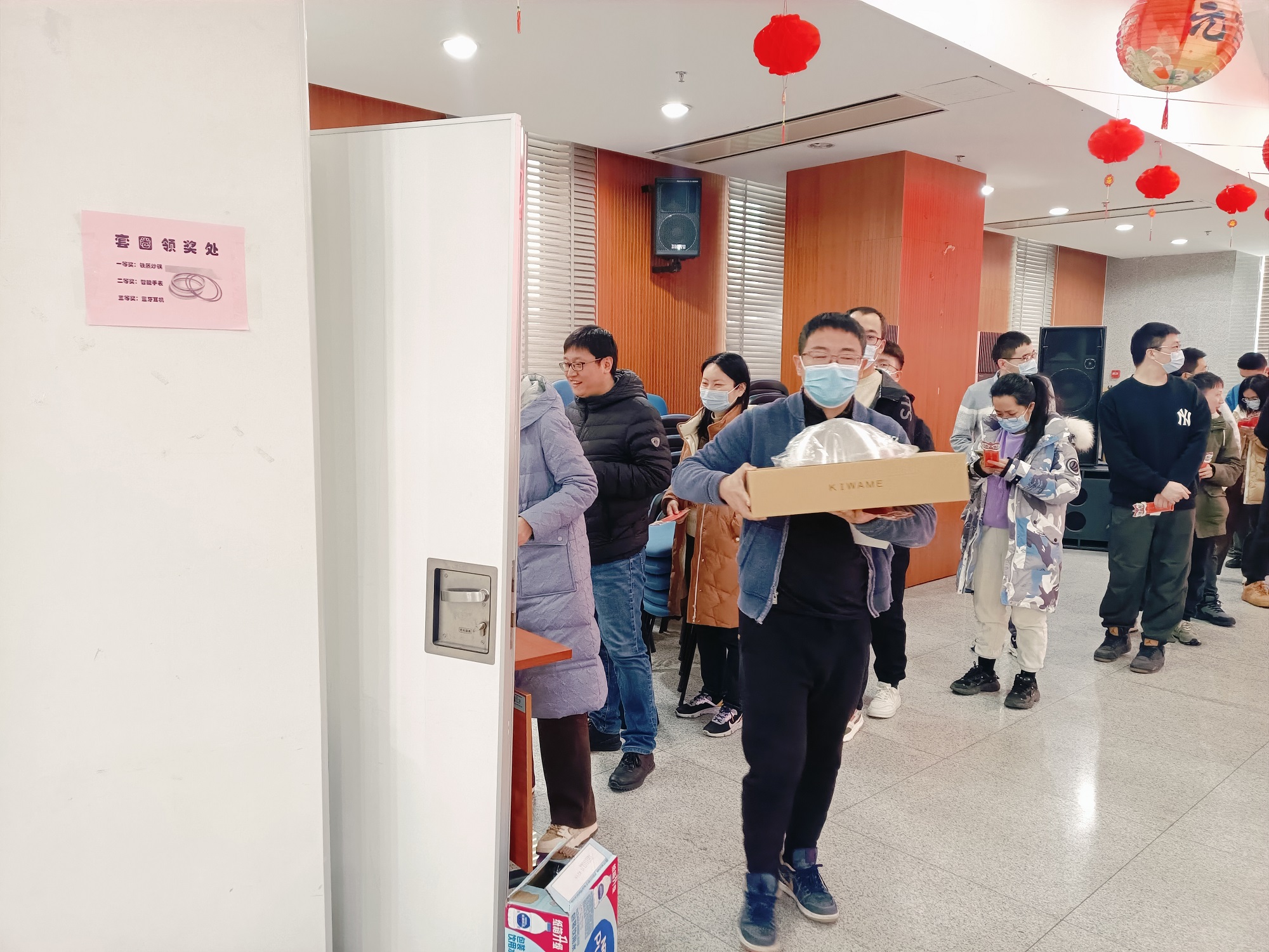 作为系列活动中的人气担当,“游园套圈”也在E301会议室精彩呈现。在现场工作人员的有序组织下,近500人分五组参与套圈游戏。现场气氛十分活跃,大家相互交流套圈技巧,为技艺高超的鼓掌加油,为差之毫厘的扼腕叹息。套中奖品的职工兴高采烈地收获了节日礼物,参与的职工也享受了游戏带来的欢乐气氛。