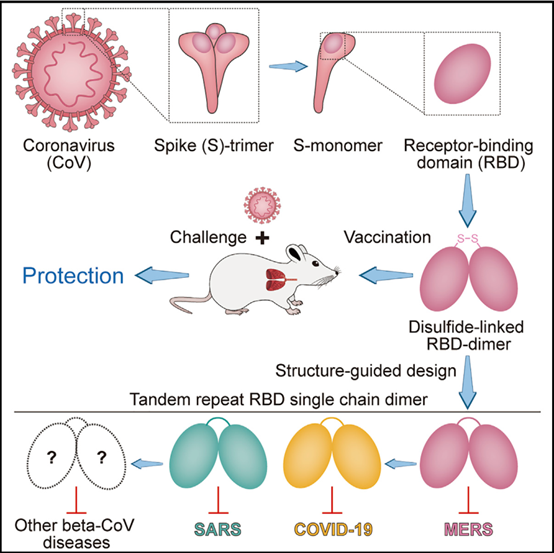 10. Dai, L., Zheng, T., Xu, K., Han, Y., Xu, L., Huang, E., An, Y., Cheng, Y., Li, S., Liu, M., Yang, M., Li, Y., Chen, H., Yuan, Y., Zhang, W., Ke, C., Wong, G., Qi, J., Qin*, C., Yan*, J. and Gao*, G. F., 2020, A universal design of betacoronavirus vaccines against COVID-19, MERS and SARS. Cell, 182 (3): 722-733.e11.