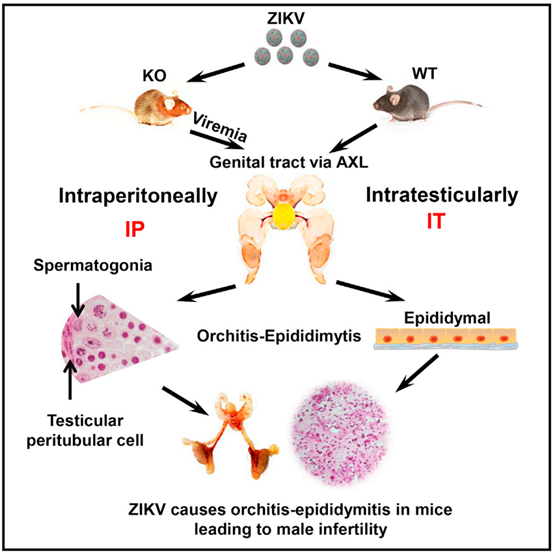 Figure1:Zika virus infection causes testis damage and male infertility.
