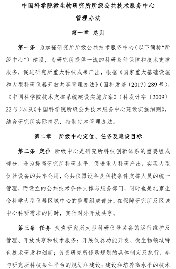中国科学院微生物研究所所级公共技术服务中心管理办法