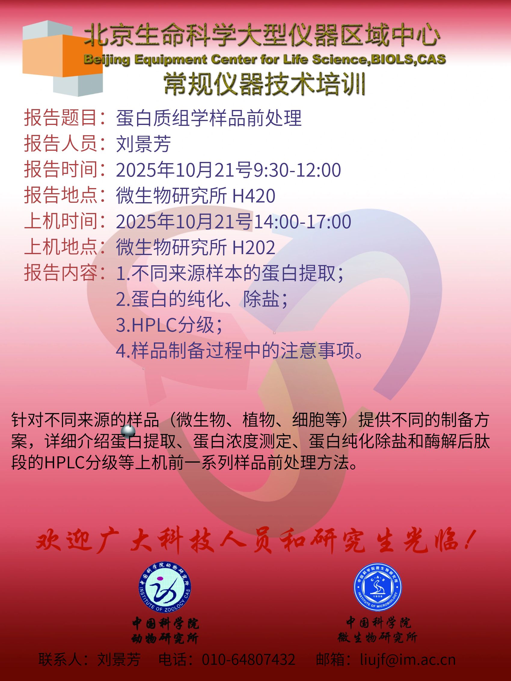 关于举办蛋白质组学样品前处理技术培训的通知