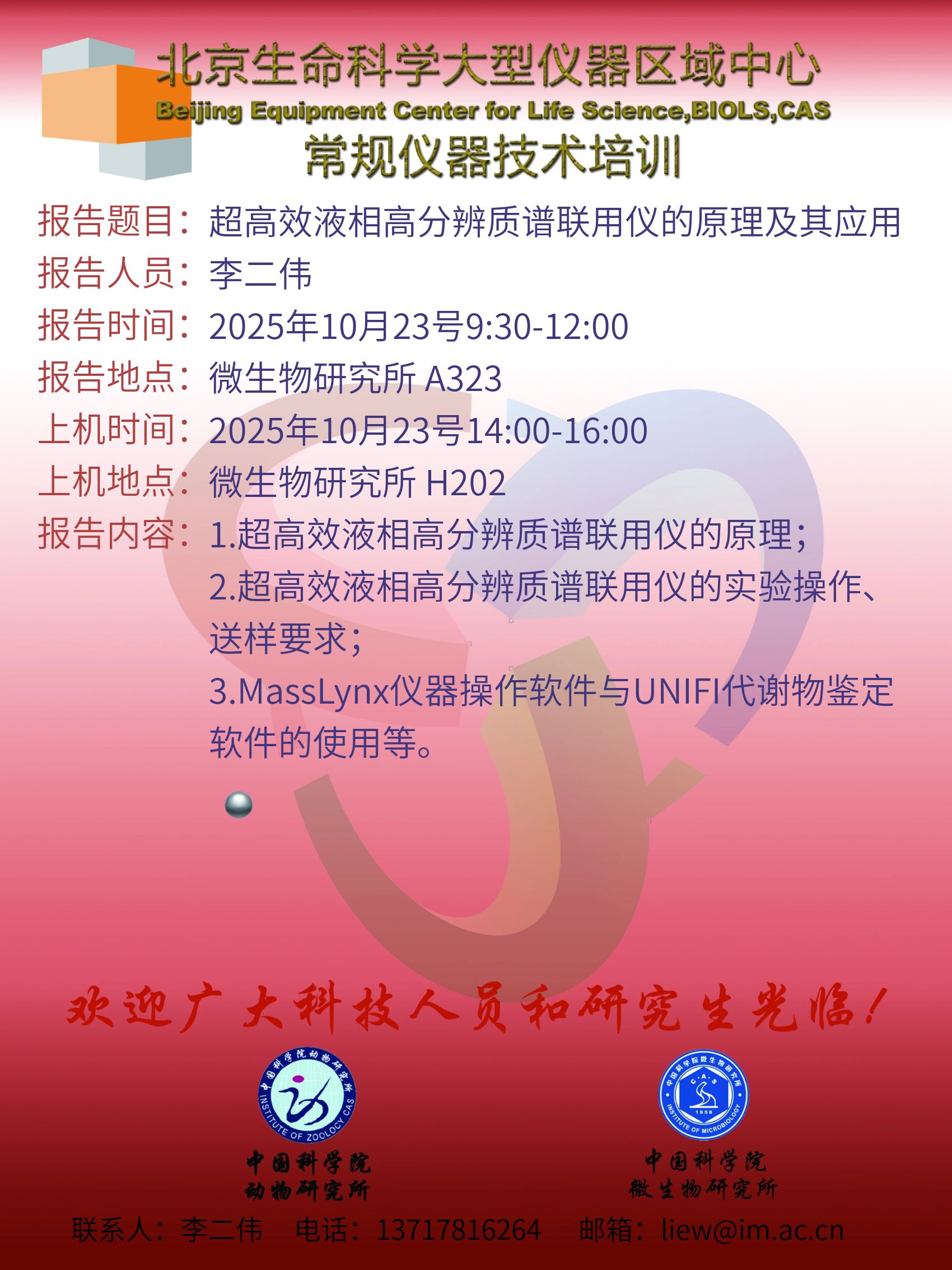 关于举办超高效液相高分辨质谱联用仪的原理及其应用技术培训的通知