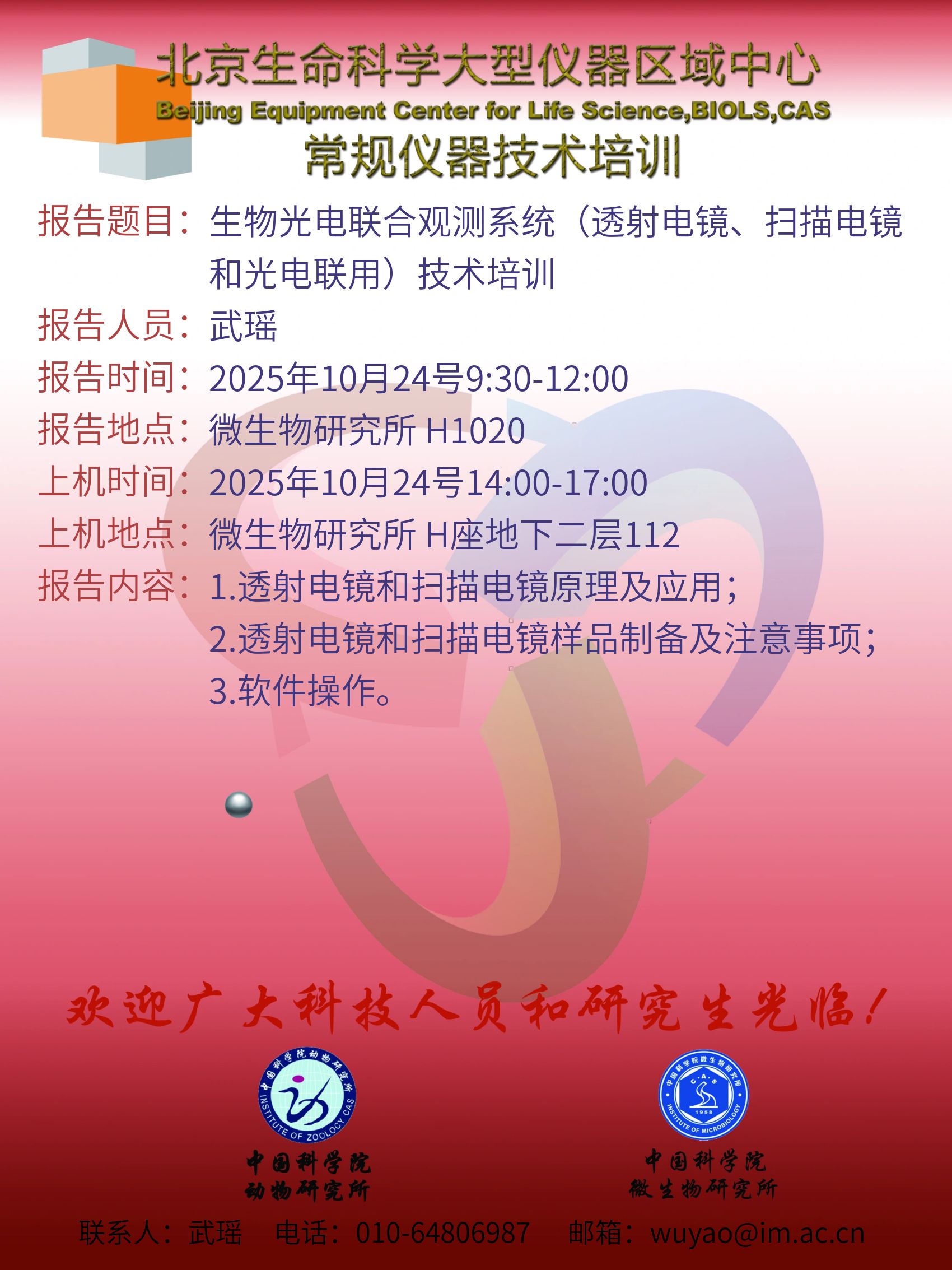 关于举办生物光电联合观测系统(透射电镜、扫描电镜和光电联用)技术培训的通知