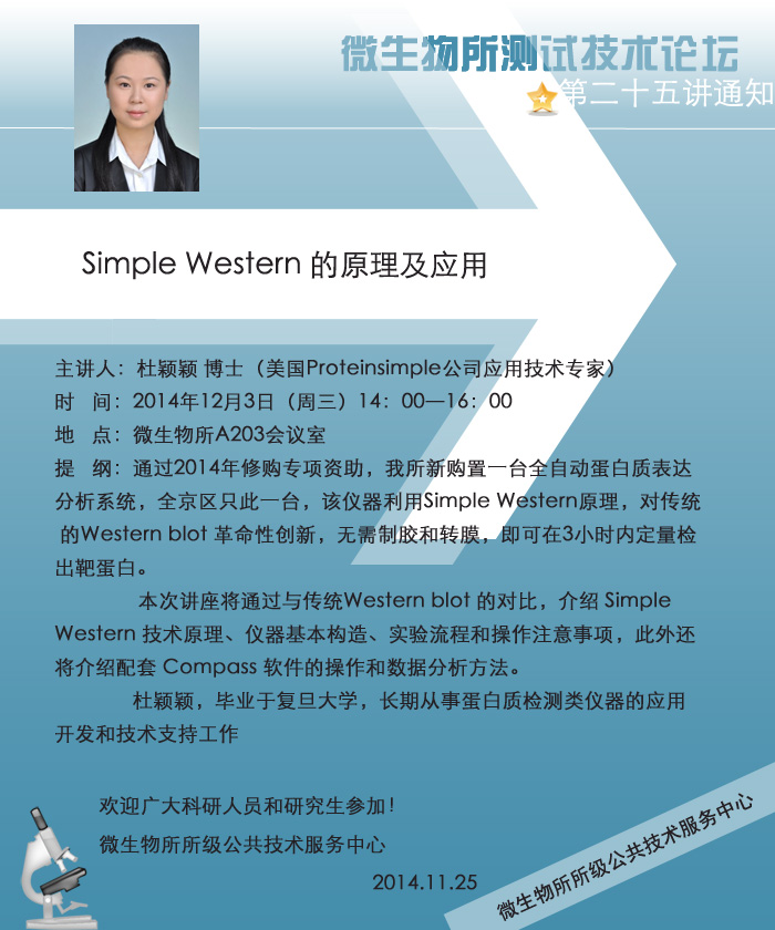 关于“微生物所测试技术论坛”第二十五讲的通知