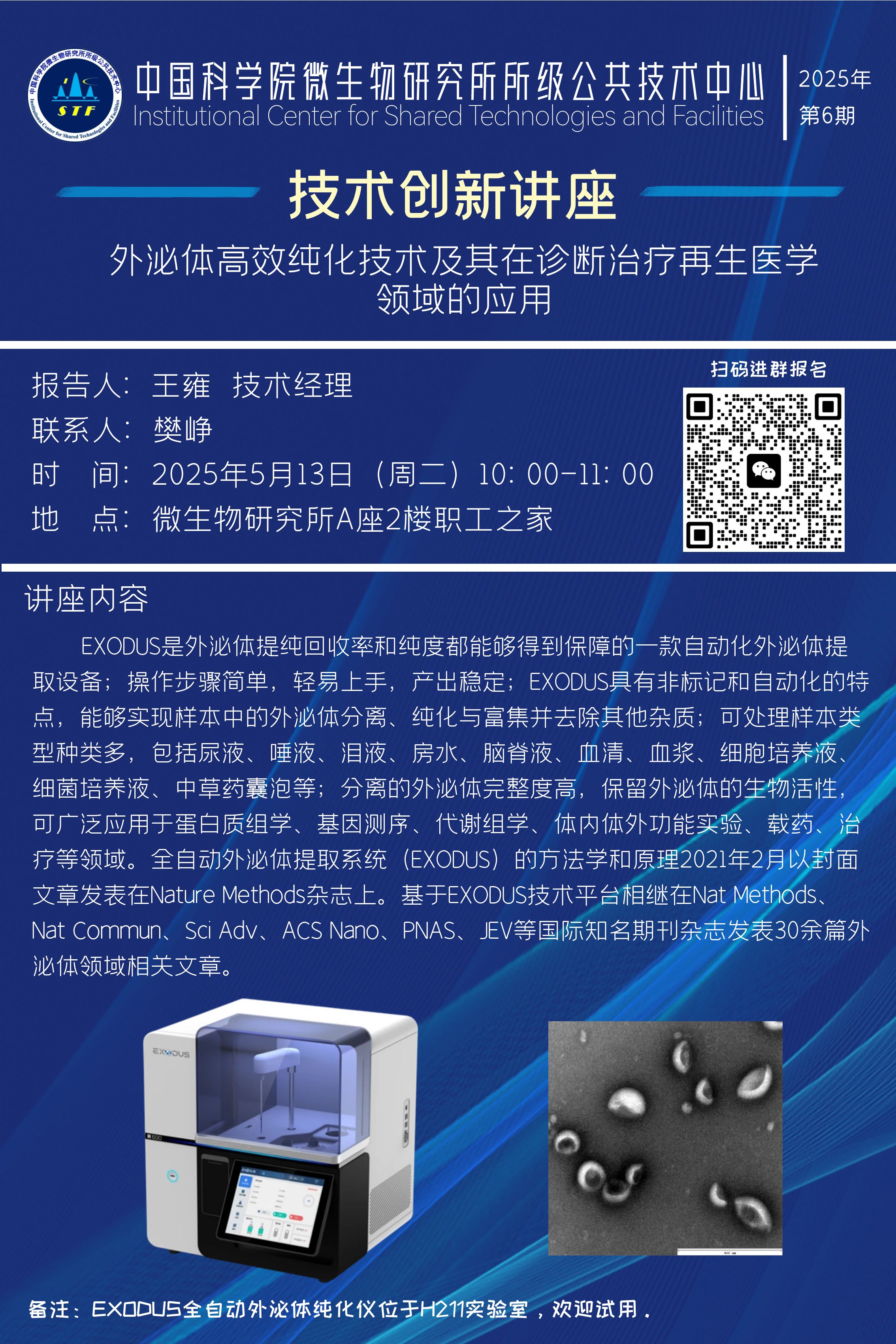2025年第6期技术创新讲座:外泌体高效纯化技术及其在诊断治疗再生医学领域的应用