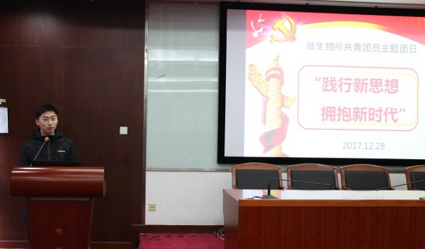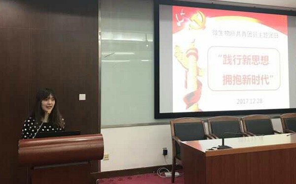 所团委书记贾婴植详细介绍了“践行新思想、拥抱新时代”组织生活会的背景、我所共青团组织框架的基本情况、2017年工作的主要内容,以及2018年团委工作的思考和展望。之后,来自六个团支部的十二名优秀团员代表结合自身科研工作实际,分享了十九大报告的学习新体验。其中,职工团支部的沈兰表示,日新月异的科技进展带来了时代的改变,作为在科研一线的共青团员,应该耐得住清贫和寂寞,认真对待自己的工作岗位;2015级博士团支部的周爽讲到,年轻团员应该心怀理想不忘初心,自觉用青春和激情铸好中国梦,用个人小梦想的实现,汇聚实现国家大梦想;2016级博士团支部的刘琪提到,他的家乡是云南一个很小的县城,他生长的地方和现在生活的北京有巨大的差异,这种差异让他对十九大报告中习主席鼓励人才向基层和一线流动深有感触,作为新一代的共青团员,不应该独享其成,应该时刻把祖国的需要放在第一位,国家哪里有需要,我们就应该去哪里抒写青春,为祖国发展贡献力量;2017级博士团支部的闫磊和王云浩均表示,尽管他们的研究方向微生物污水处理应用化的道路困难重重,但是解决污水处理难题的重要技术,正是因为有了众多像科院人一样的青年对实验室小目标的坚守,才能最终实现十九大报告中“绿水青山”的美好蓝图;2015级硕士团支部胡启跳在发言中说到,十九大报告中提到从现在本世纪中叶,把我国建成富强民主文明和谐美丽的社会主义现代化强国,这段时间,自己从25岁到55岁,正值奋斗上升时期,个人努力了,国家才能有发展,个人的成长与国家的命运息息相关;2016级硕士团支部刘晴介绍了自己从事的蛹虫草研究工作,她为自己能够成为国家科技动车上的一列车厢深感荣耀,希望自己的科研工作能为实现人民对美好生活的向往,特别是为全人类的健康列车增加动力。
