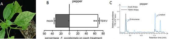图1:TSWV抑制辣椒多个单萜化合物从而吸引媒介昆虫—西花蓟马