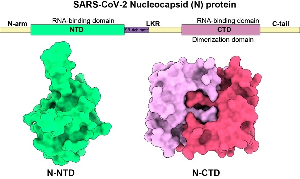 图注:新冠病毒N蛋白NTD和CTD结构
