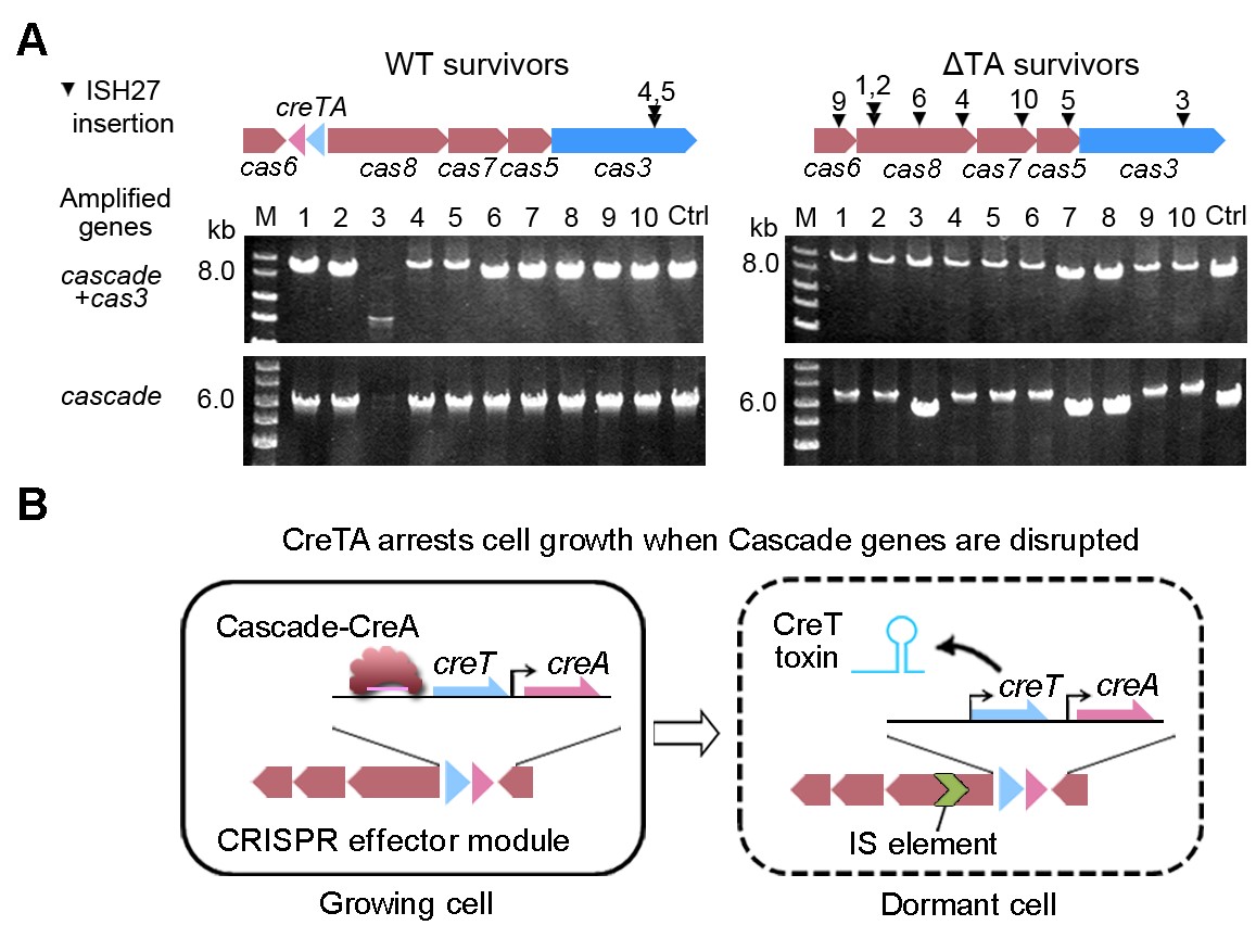 图1. CRISPR-Cas系统与CreTA毒素-抗毒素系统的互作机制