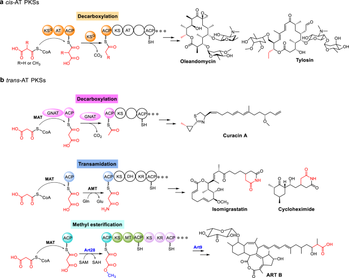 图1:甲酯化在线修饰起始聚酮化合物ART的生物合成