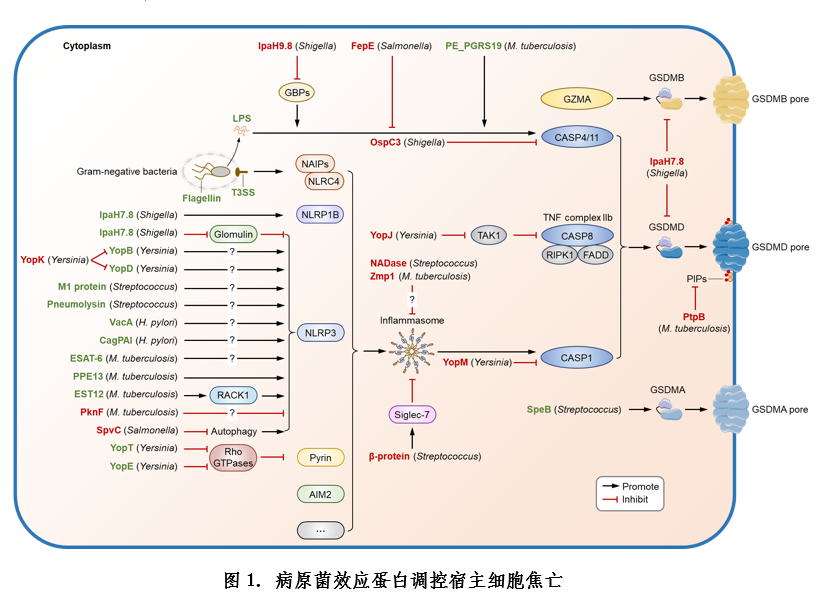 细胞焦亡(pyroptosis)是一类典型的细胞炎性坏死方式,是宿主抵抗病原感染的一种重要的固有免疫防御机制。然而,大量证据表明,包括Mtb在内的诸多病原菌已进化出调控宿主细胞焦亡以逃逸免疫清除并建立持续感染的特殊机制。在这篇综述文章中,作者详细介绍了宿主依赖细胞焦亡清除感染微生境、促进免疫因子释放以及直接杀伤病原菌的免疫机制,并系统梳理了病原菌利用效应蛋白参与调控宿主细胞焦亡的研究进展。随后,文章还深入探讨了靶向细胞焦亡的感染性疾病防治新策略,包括利用细胞焦亡靶向药物与传统抗生素联用以缩短感染性疾病的治疗周期并减少病原菌的耐药发生,以及通过靶向细胞焦亡的关键病原调控分子以优化疫苗株的免疫保护效力。最后,文章还提示了该领域未来有待进一步解答的重要科学问题,如拮抗细胞焦亡的细胞修复机制是什么,细胞焦亡与其他细胞死亡信号通路之间的交互调控机制是什么,以及执行细胞焦亡的效应分子gasdermin家族蛋白是否还有非焦亡相关的其他免疫功能等。