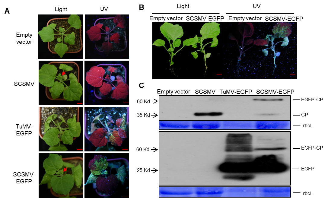 甘蔗花叶病是影响甘蔗产量的重要病原物,SCSMV是引起甘蔗花叶病的主要病原体之一,但由于缺乏遗传学研究工具, SCSMV的研究一直进展缓慢。