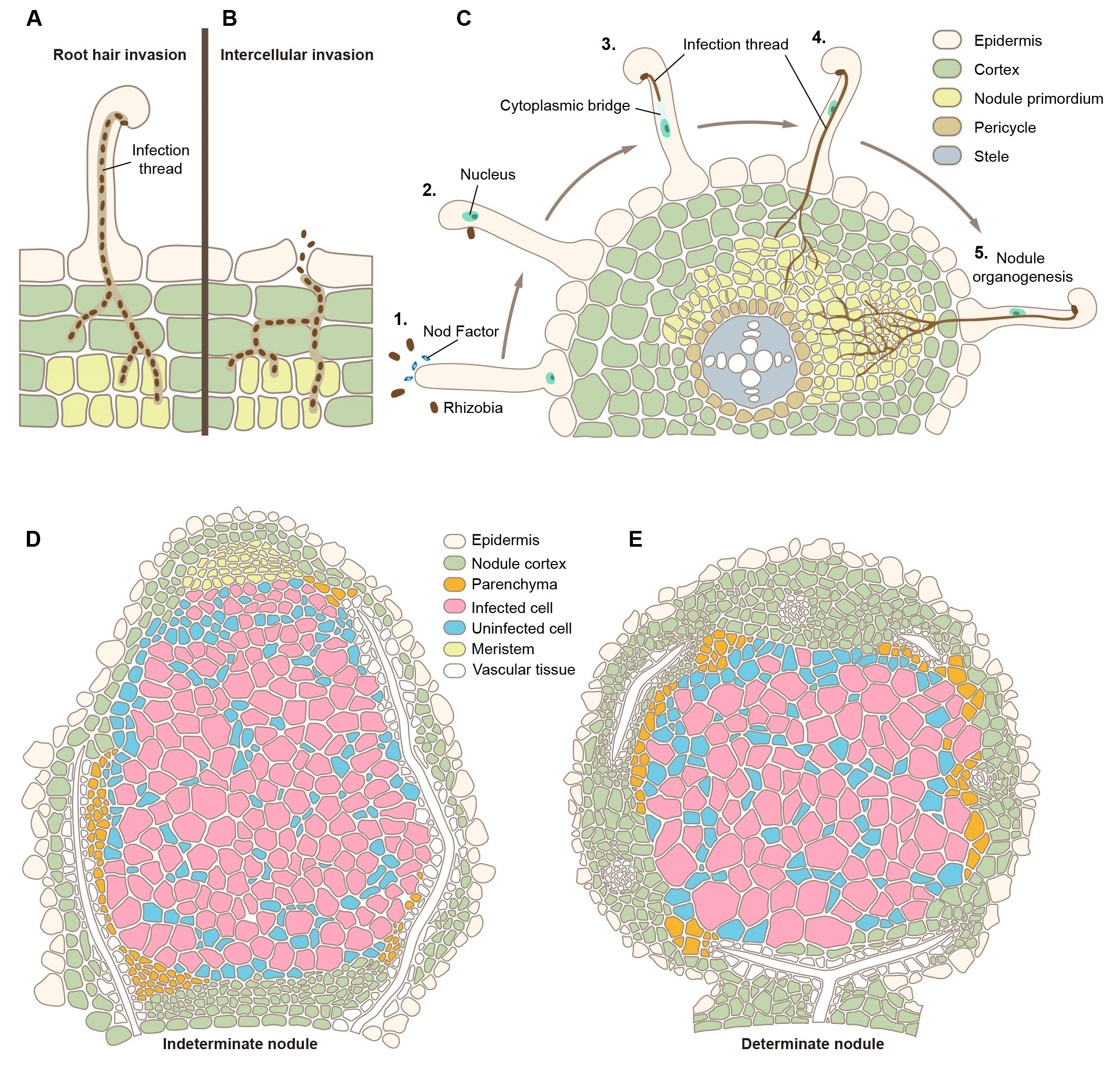 图1 豆科植物与根瘤菌互作的细胞生物学过程