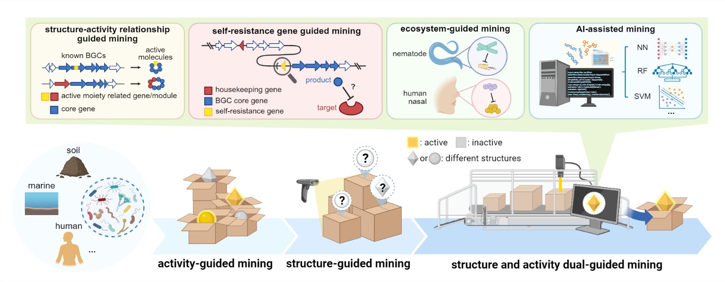 图1. 微生物NPs挖掘策略的发展及可实现结构和活性双重预测的四种代表性方法