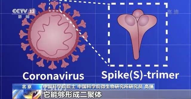 中国科学院院士 中国科学院微生物研究所研究员 高福:我们在基础研究中发现,这个(新冠病毒刺突)蛋白它的受体结合域(RBD)一小段蛋白,它能够形成二聚体,最关键的是如何稳定这样的二聚体。我们采用了共价键连接的重复序列解决了这个问题。