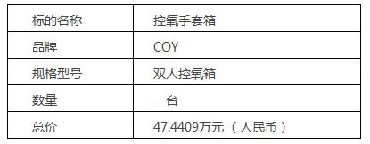 微生物所控氧手套箱设备采购项目,经评审委员会评审和采购人确认,现将评标结果公布如下: