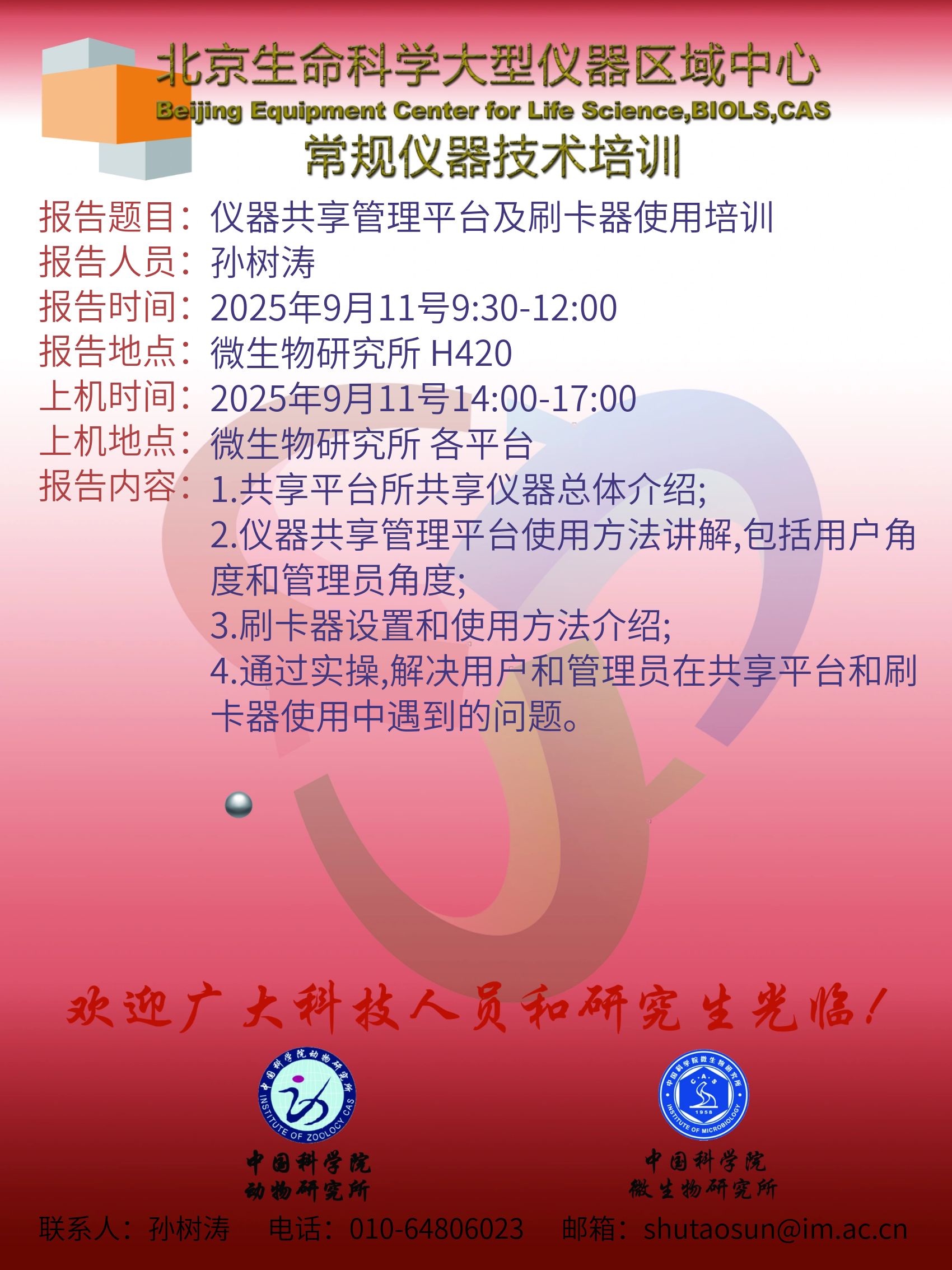 关于仪器共享管理平台及刷卡器使用培训的通知
