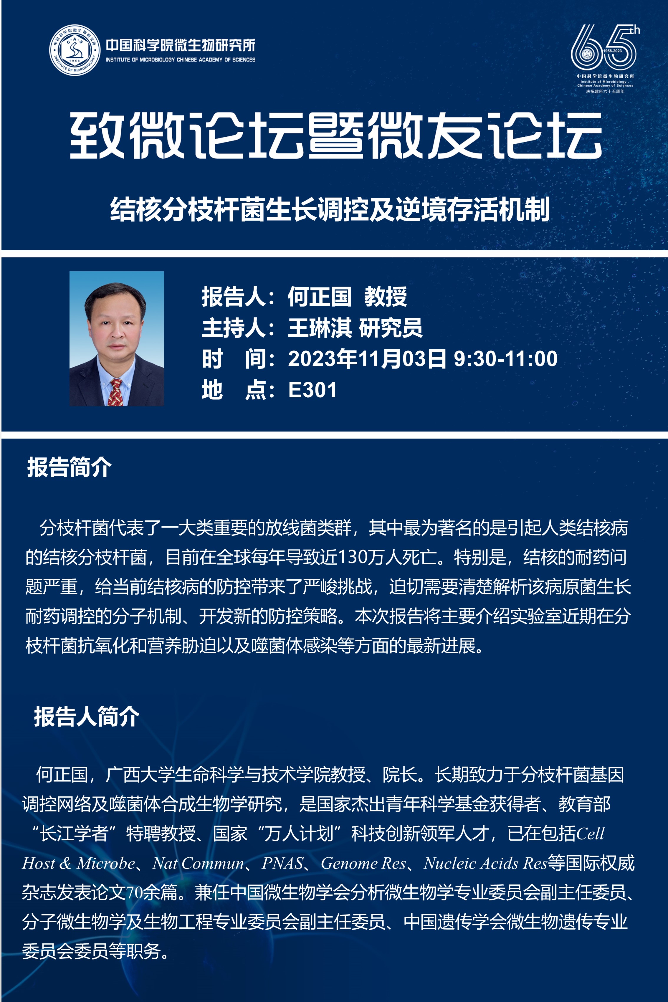 会议通知|致微论坛暨微友论坛:结核分枝杆菌生长调控及逆境存活机制