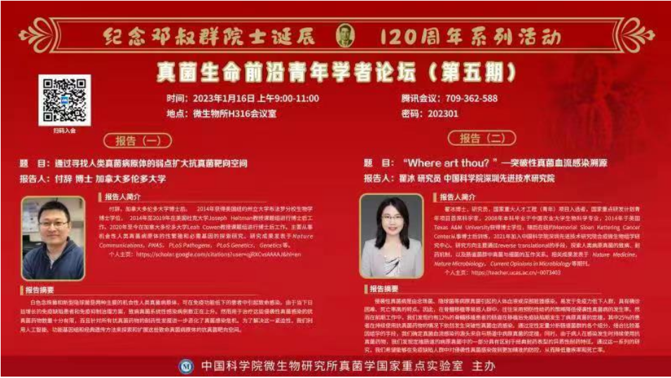 纪念邓叔群院士诞辰120周年系列活动真菌生命前沿青年论坛(第五期)