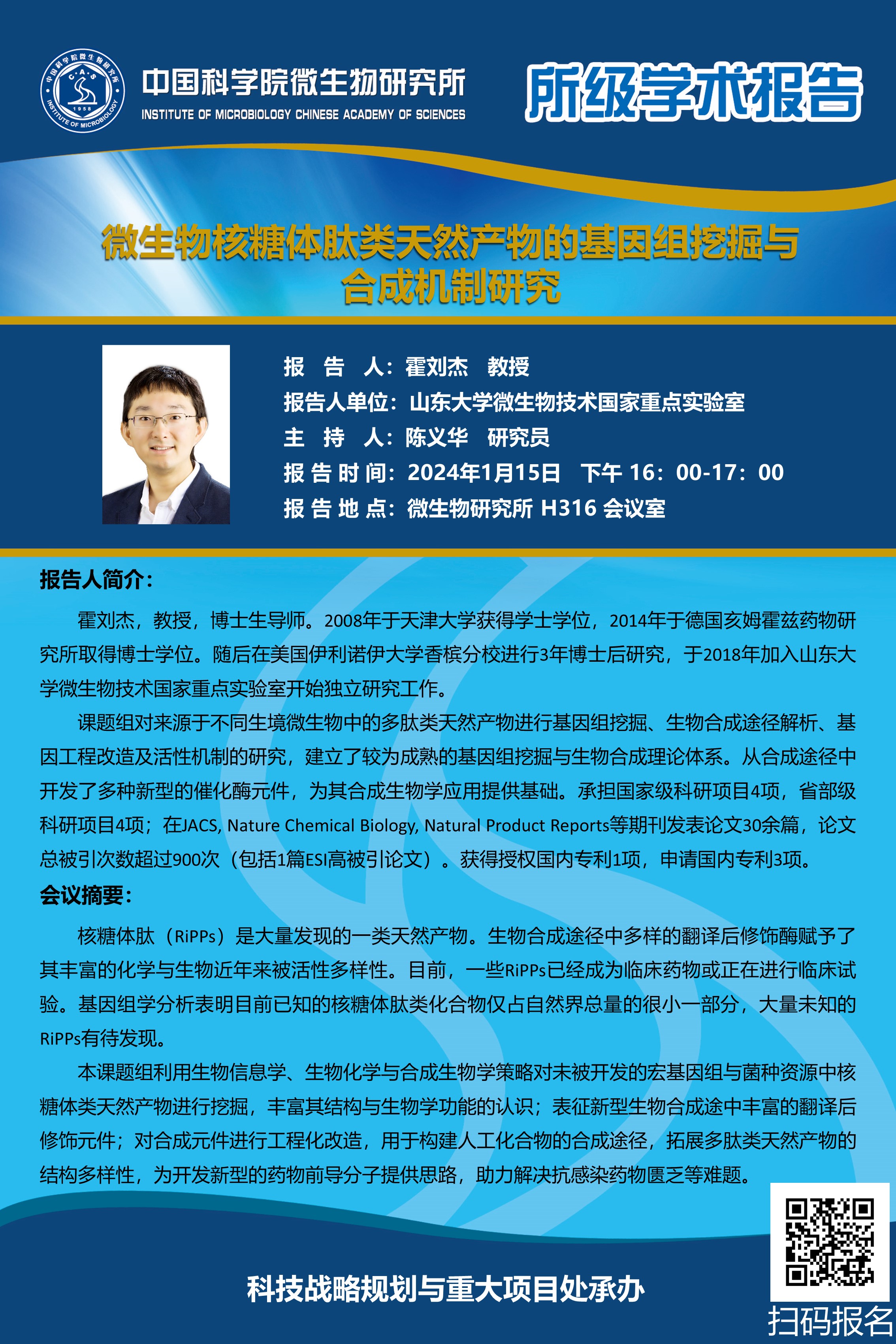 所级学术报告:微生物核糖体肽类天然产物的基因组挖掘与合成机制研究