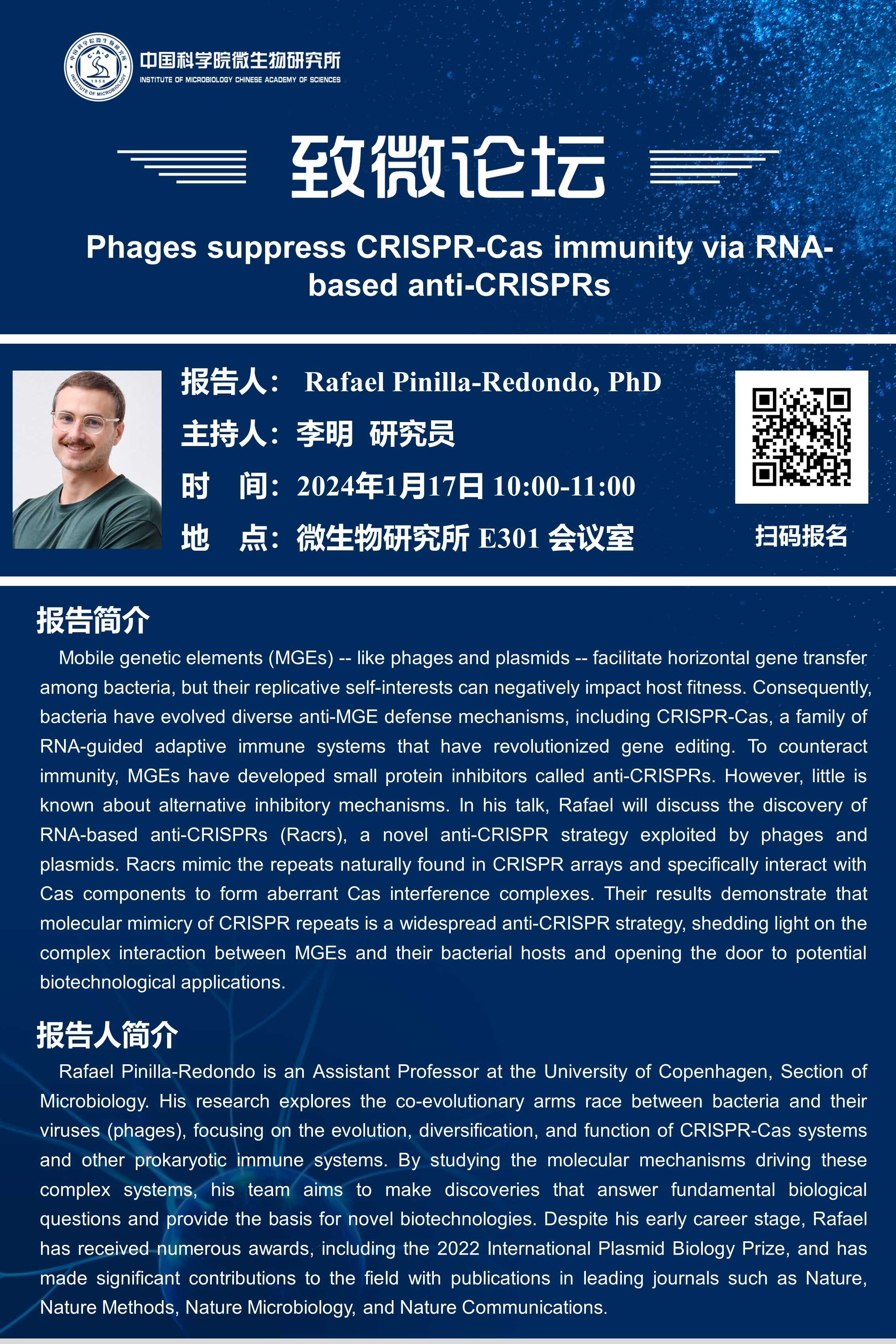 致微论坛:Phages suppress CRISPR-Cas immunity via RNA-based anti-CRISPRs