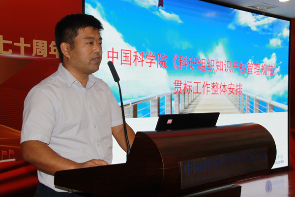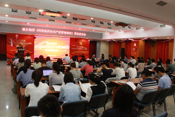 2019年9月29日,中国科学院微生物研究所召开了《科研组织知识产权管理规范》贯标工作启动会。向华副所长、各科研单元负责人、知识产权联络员、科研管理骨干、职能部门负责人、贯标组成员等90余人参加了会议。中科院科技促进发展局知识产权管理处田永生处长、中科院科技战略咨询研究院刘海波研究员、原大化所资产公司知识产权高级经理刘海燕应邀出席本次会议并授课。