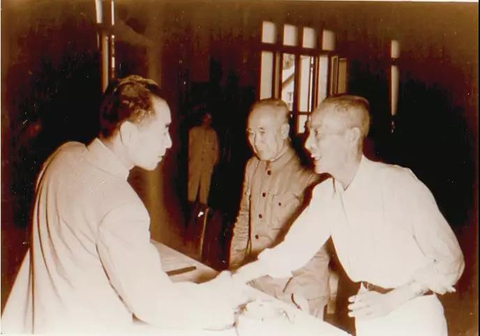 ▲1955年在中科院学部成立大会上与周总理握手