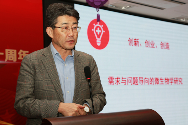 向华副所长最后代表研究所科研人员正面回应了高福院士的期待。他用振聋发聩一词形容演讲带给自己的震撼,坦言这是多年来参加的诸多讲座活动中精神最为振奋最受触动的一次。他对高福院士高屋建瓴又切实可行的分析建议表示非常认同,并表示自己也在思考这一问题,要敢于走出舒适圈,敢于去挑战重大科学问题,无论最终成败,但且迈出第一步。他同时表示,将和所班子全体成员一起,为研究所的改革发展殚精竭虑,多方谋划,为支撑未来发展的中青年科研人员铺平道路,争取空间,力争在5-10年里让微生物所重拾昨日辉煌,成为国际一流研究所。