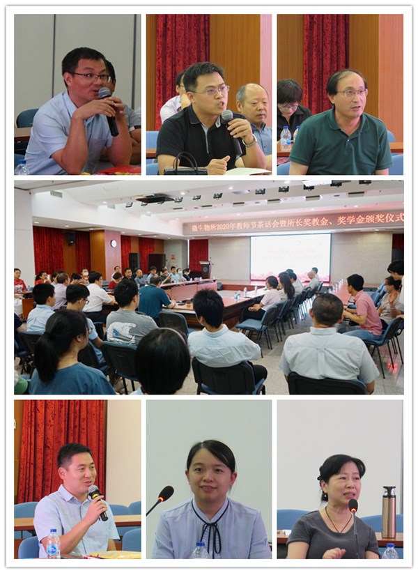 金秋九月,天高云淡。9月10日早晨,所领导、研究生部以及研究生会齐聚微生物所A座和F座大厅,为研究所老师们献上饱含感谢与祝福的鲜花,祝愿各位老师第36个教师节节日快乐。献花活动结束后,研究所在E301会议室举行了2020年教师节茶话会暨所长奖教金、奖学金颁奖仪式。党委书记、副所长李俊雄,副所长向华,党委副书记、纪委书记杨永峰与30余位老师共庆佳节。会议由研究生部副主任程浩主持。