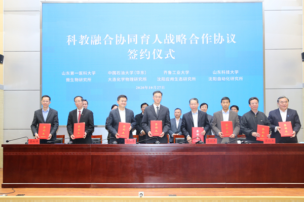 为进一步学习贯彻习近平总书记和李克强总理关于研究生教育工作的重要指示精神,探索和完善科研院所与高等院校之间的协同创新与人才联合培养机制,10月27日上午,中国科学院微生物研究所出席中科院沈阳分院与山东省教育厅的科教融合协同育人战略合作协议签约仪式,并与山东第一医科大学、山东师范大学和齐鲁工业大学等3所高校同时签约。微生物所所长钱韦和研究生部相关负责人员共同参加仪式。