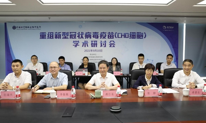 近日,“重组新型冠状病毒疫苗(CHO细胞)学术研讨会”在中国科学院微生物研究所、重庆智飞生物制品股份有限公司、安徽智飞龙科马生物制药有限公司等三地采取线下与线上结合方式顺利召开。参加研讨会的有中国科学院病原微生物与免疫学重点实验室主任、微生物所学术委员会主任高福院士、微生物所领导班子成员、项目组成员,智飞生物及安徽智飞龙科马企业领导及高管等30余人参会,会议由微生物所李俊雄书记主持。