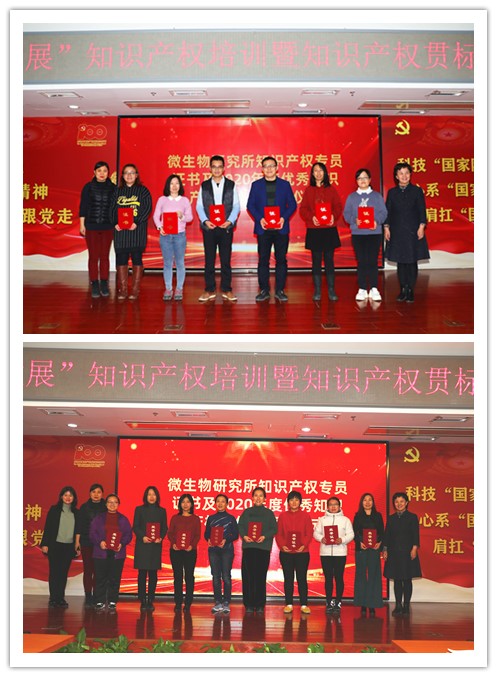 此次会议还为40多位满足学时并通过知识产权专员考试的科研人员颁发了研究所知识产权专员证书,同时对2020年度优秀知识产权工作者进行了表彰。