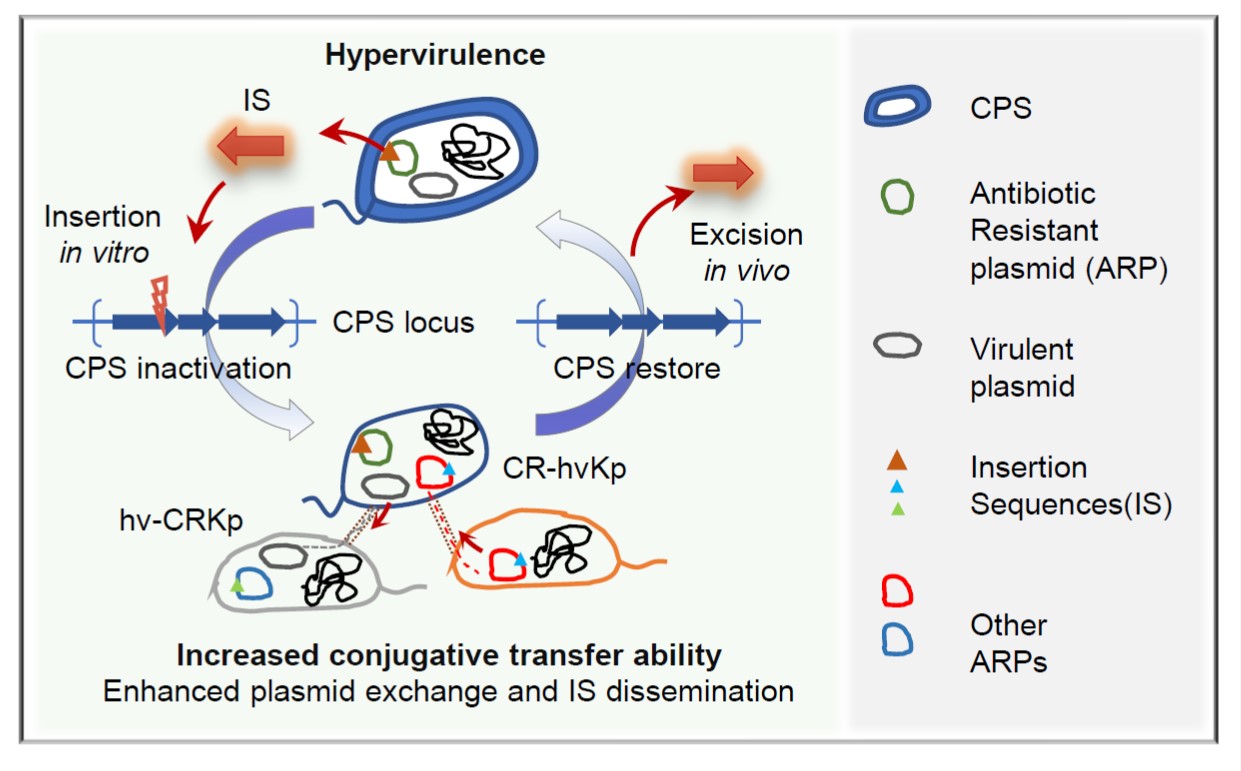 肺炎克雷伯菌作为临床常见致病菌,能引发肺炎、血流感染等多种疾病。近年来,碳青霉烯耐药(CRKP)和高毒力(hvKP)菌株导致的感染不断增加,严重威胁公共卫生安全。更严峻的是,这两类菌株特征正在融合,形成同时具备高毒力与多重耐药性的CR-hvKP。其融合与质粒的水平转移相关,但具体机制仍不完全明确。