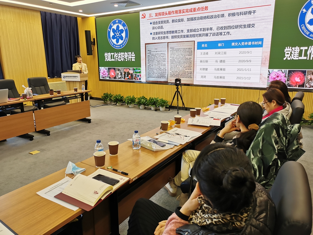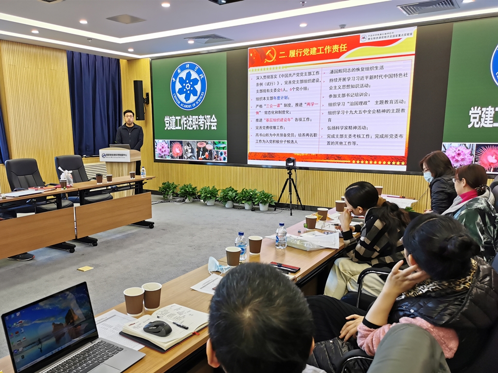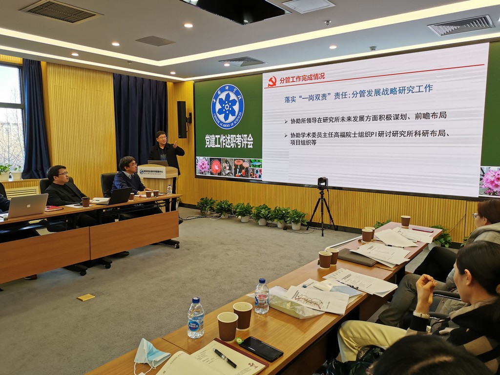 李俊雄首先介绍了2020年度党建考评工作和“基层组织建设年”活动达标评估的相关要求。随后,各位党委委员分别围绕2020年政治建设、思想建设、组织建设、作风建设、创新性工作开展、投入党建工作的时间和精力以及存在问题和思考进行了述职汇报。党支部书记们也分别就政治功能发挥、支部班子建设、党员队伍建设、作用发挥情况以及党建与科研融合发展等5个方面取得的成效、存在的问题和下一步工作思路进行了报告。由党委书记、副书记、党建工作处负责人以及各科研支撑单元党员群众代表组成的评审小组现场对述职情况进行了打分。