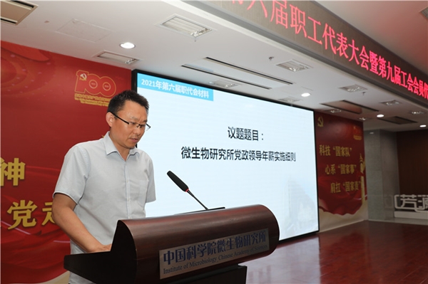 2021年6月23日,微生物研究所在E301会议室召开了第六届职工代表大会暨第九届工会会员代表大会。47名职工代表和特邀代表参加了会议,职代会、工会副主席马俊才主持会议。