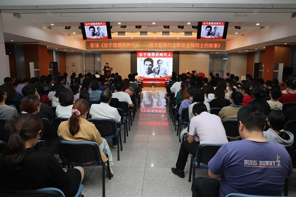 彭湃烈士是中国共产党早期农民运动的主要领导人之一,他主动放弃衣食无忧的生活成为一名无产者,领导建立了中国第一个苏维埃政权——海陆丰苏维埃政权,被捕入狱后依然保持革命精神,高唱《国际歌》从容就义。彭士禄院士是我国核动力领域的开拓者和奠基者之一,是中国第一任核潜艇总设计师,他始终以国家的利益为先,甘于奉献,勇挑重担,身先士卒,忘我工作,把毕生精力奉献给祖国的核动力事业,为我国核动力领域做出重要贡献。报告中,彭洁女士从“满门忠烈热血涌”“百家养育赤子情”“自力更生延河水”“负笈求索原子能”“核动力路上垦荒牛”“情系事业爱祖国”六个方面,通过大量珍贵的视频和图片史料,饱含深情地讲述了一个个感人至深的红色故事,重现了彭湃烈士和彭士禄院士为民族复兴伟大理想信念无私奉献的光荣一生。