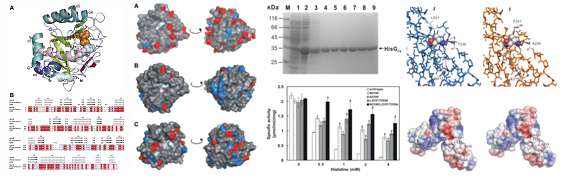 Fig 3. A surfactant-stable high-alkaline protease AprB with a novel structural feature and the release of feedback inhibition of ATP phosphoribosyltransfer by histidine using the structure analysis and site-directed mutagenesis.