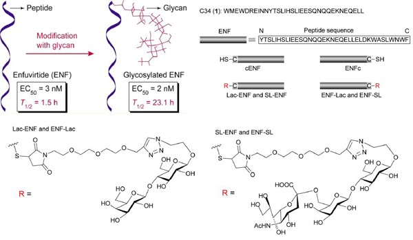 Fig 2. Glycosylated enfuvirtide: a long-lasting glycopeptide with potent anti-HIV activity. (Journal of Medicinal Chemistry2015;European Journal of Medicinal Chemistry2016)