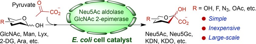 Fig 3. Synthesis of sialic Acids, their derivatives, and analogs by using a Whole-Cell catalyst. (Chemistry-A European Journal2017) |