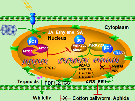 - Li R, Weldegergis BT, Li J, Jung C, Qu J, Sun Y, Qian H, Tee C, van Loon JJ, Dicke M, Chua NH, Liu SS,Ye J*.2014. Virulence factors of geminivirus interact with MYC2 to subvert plant resistance and promote vector performance.The Plant cell26:4991-5008.