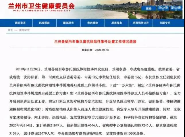 △兰州兽研所布鲁氏菌抗体阳性事件处置工作情况通报(图片来源:兰州市卫健委)