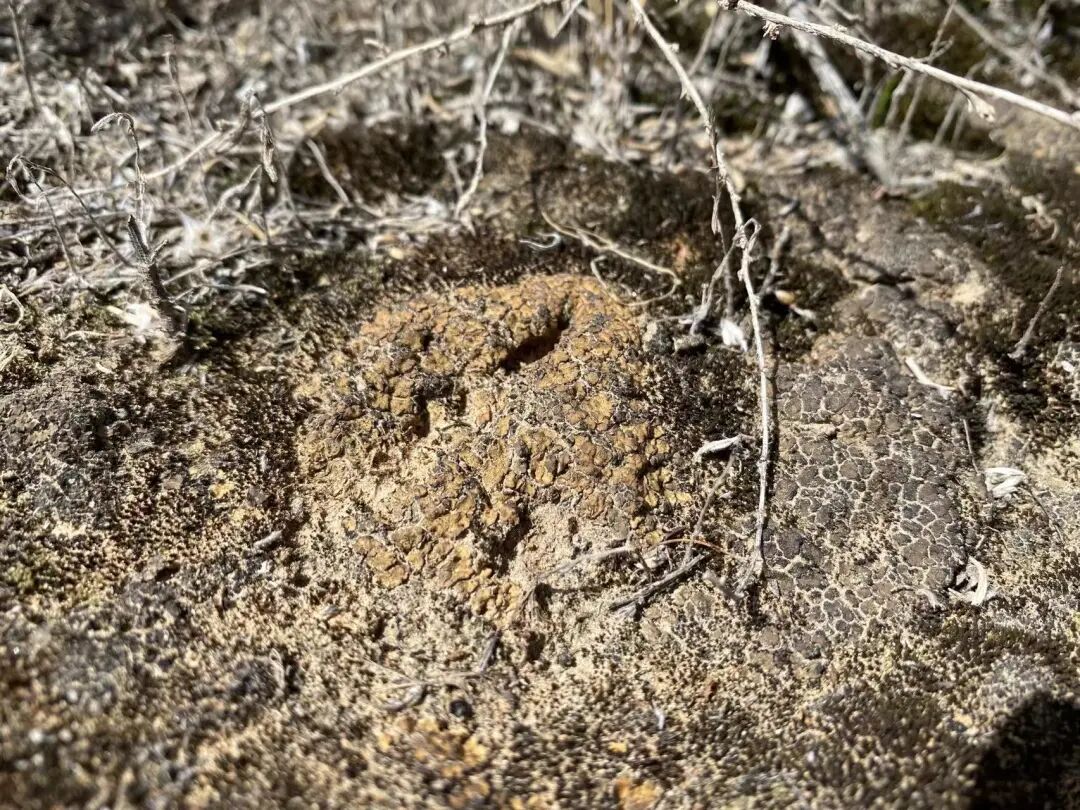 生长于沙漠地表的石果衣Endocarpon群落(照片由中国科学院微生物研究所魏鑫丽研究员摄于宁夏中卫)