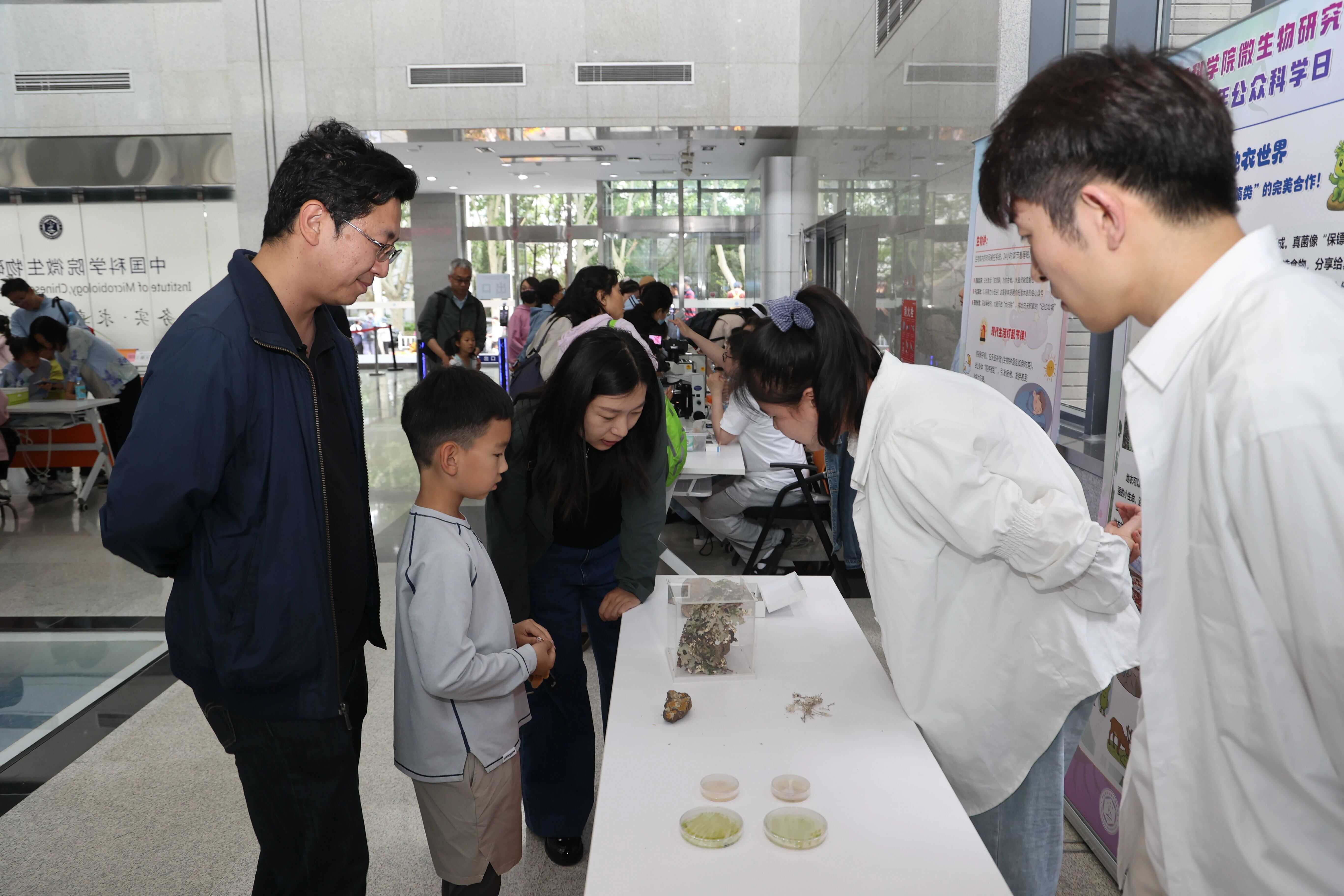 2025.5.17 微生物研究所科学日“神奇的地衣世界”展区,公众观摩地衣,听取科普讲解