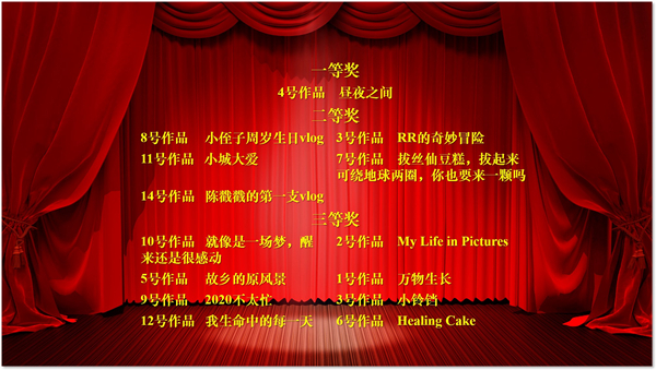 此次生活秀Vlog征集主要围绕风景、美食、杂记等三个主题开展,涵盖作品征集、线上展示、网络投票三个环节,共收到Vlog作品14份,最终评选出一等奖1名,二等奖5名,三等奖8名。有的作品展现了令人叹服的摄影技术,精妙绝伦的厨艺技巧,青春洋溢的舞蹈歌唱;有的作品记录了春意盎然的万物生长,恋恋不忘的故乡风景,其乐无穷的居家日常;还有的作品分享了春节期间的天伦之乐,新鲜有趣的线上学习,难以忘怀的毕业经历。研究生之间通过简短的Vlog形成了良好的“云互动”,为特殊时期下的科研工作和学习生活增添了不一样的色彩,大家在活动中寻找乐趣,发现美好,以积极健康的心态期待和迎接特殊时期之后的相见。